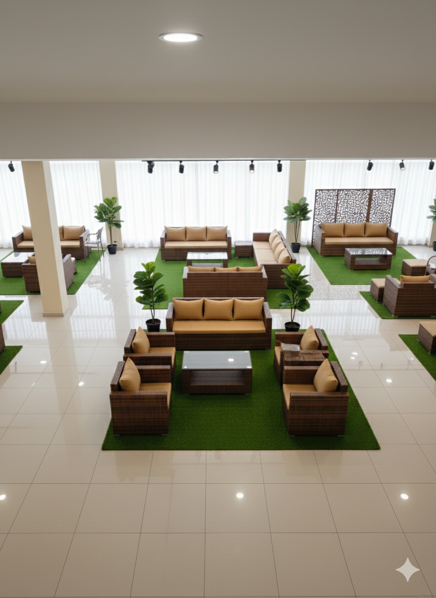 Reminder: Light furniture moves. Heavy furniture stays. Rattan set stays.
